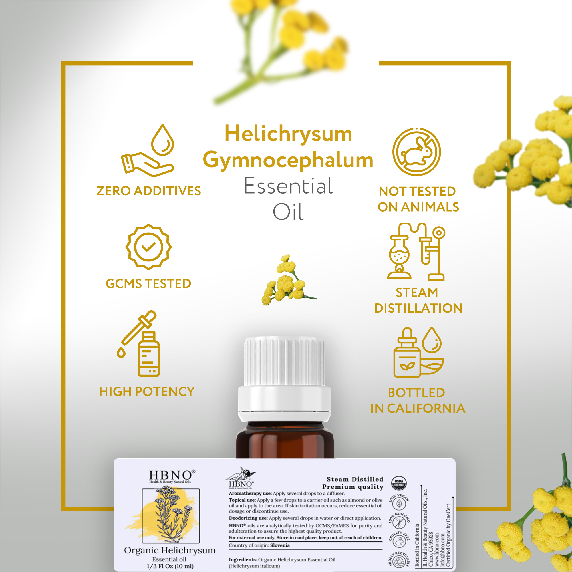 Add 3-5 drops of Helichrysum Italicum Organic Oil for every 100 ml of water. It will not only freshen up the atmosphere but also engulf you in its warm, herbaceous aroma.